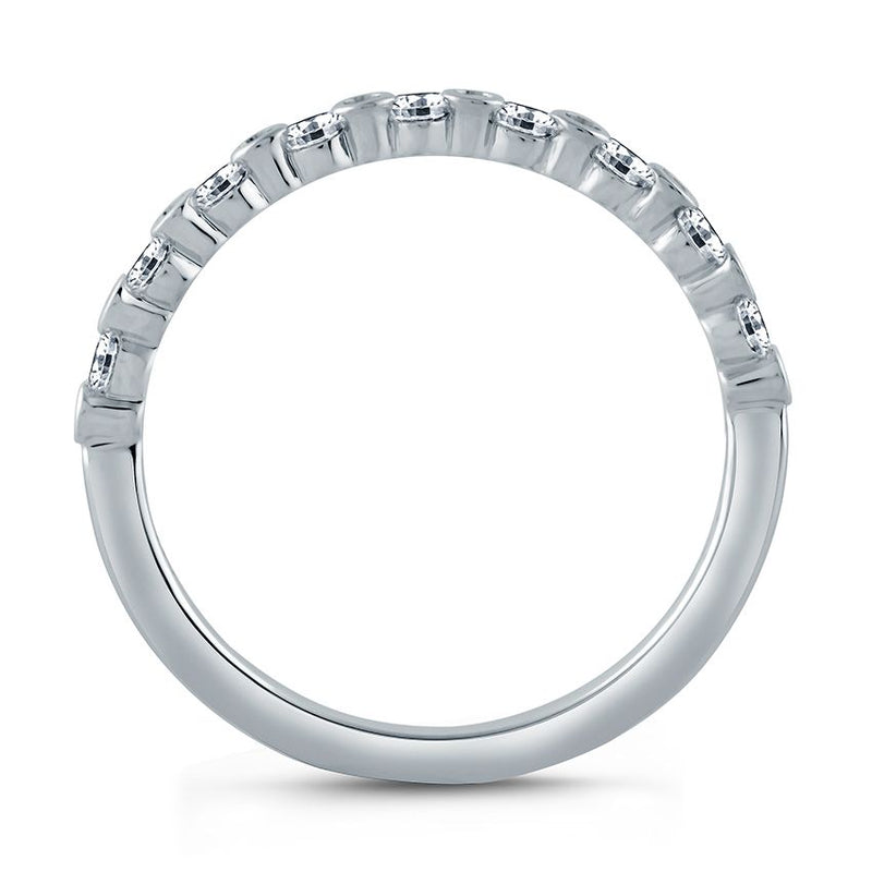 This elegant half-circle band features alternating bezel-set and channel-set round diamonds for a modern, stackable look. Crafted in 14k white gold with 0.28ct of G–SI2+ diamonds, it’s also available by special order in white, yellow, rose gold, or platinum.