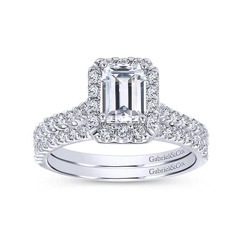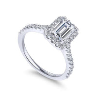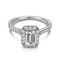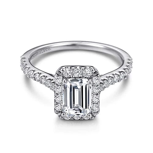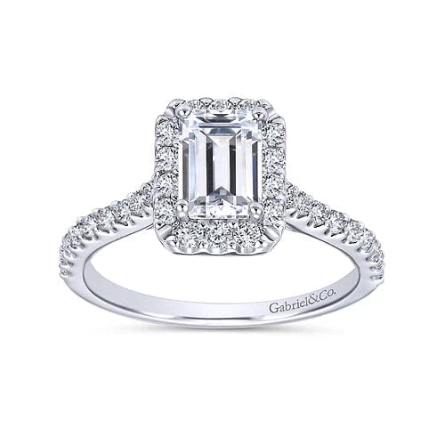 Emery - 14K White Gold Emerald Halo Diamond Engagement Ring