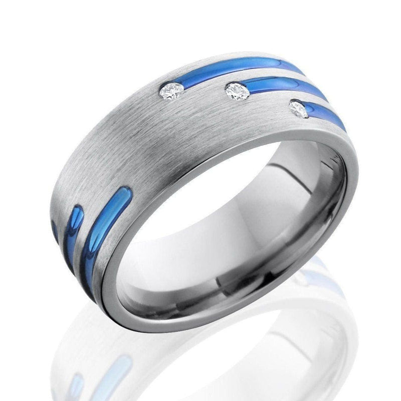 Titanium with Diamonds and Blue Inlay - Everett Jewelry