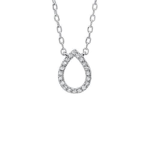 Wow her with this gorgeous open pear necklace. Available in white and yellow gold, as well. This makes the perfect present for any special occasion or holiday!