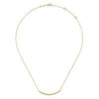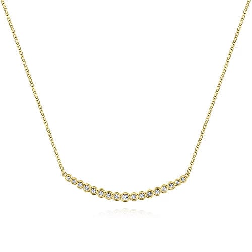 14K Yellow Gold Curved Bar Necklace with Bezel Set Round Diamonds