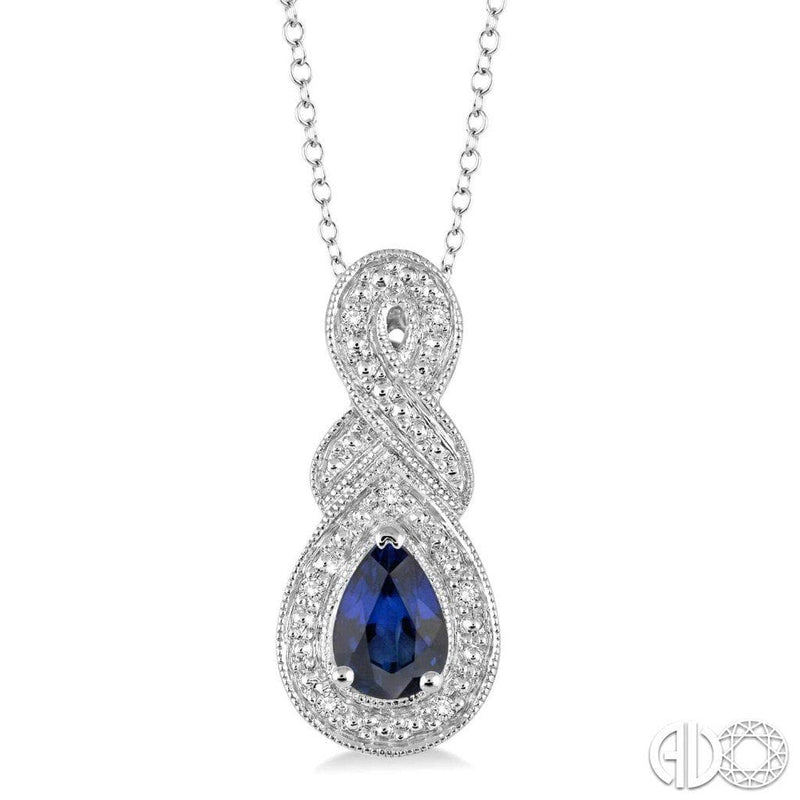Amaze the love of your life with this sapphire and diamond pendant. Fashioned in glimmering sterling silver with a gorgeous pear created sapphire.