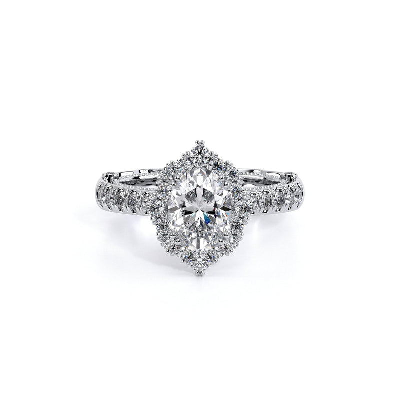 VENETIAN-5083OV engagement ring features our gorgeous Starburst Halo made for a Oval center stone. A straight shank adorned with round brilliant diamonds completes this beauty. Continue the vintage look with the lace shank on the bottom or keep it simple with our classic shank.