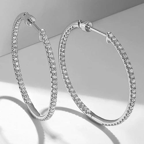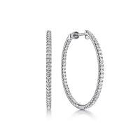 14K White Gold French Pave 30mm Round Inside Out Diamond Hoop Earrings