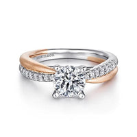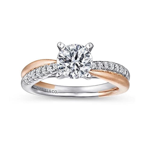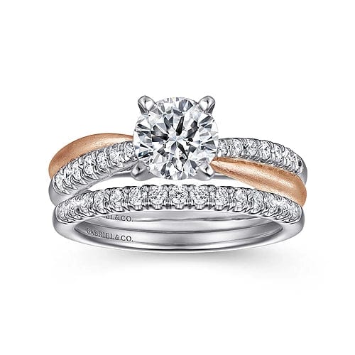 14K White-Rose Gold Round Diamond Criss Cross Engagement Ring