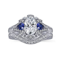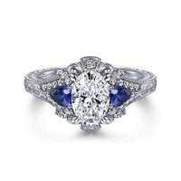 Chrystie - 14K White Gold Oval Sapphire and Diamond Engagement Ring