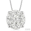 A captivating design, this lovebright diamond pendant is an exceptional gift for your sweetheart. Beautifully crafted in luminous 14 karat white gold this gorgeous diamond pendant features 9 round cut diamonds, perfectly invisible set. This pendant hangs with a fashionable cat chain.