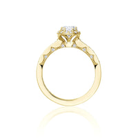 - Yellow 18 Karat Halo Style Ring With One R Cubic Zirconium And 50=0.26Tw Round G Vs2 Diamonds