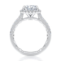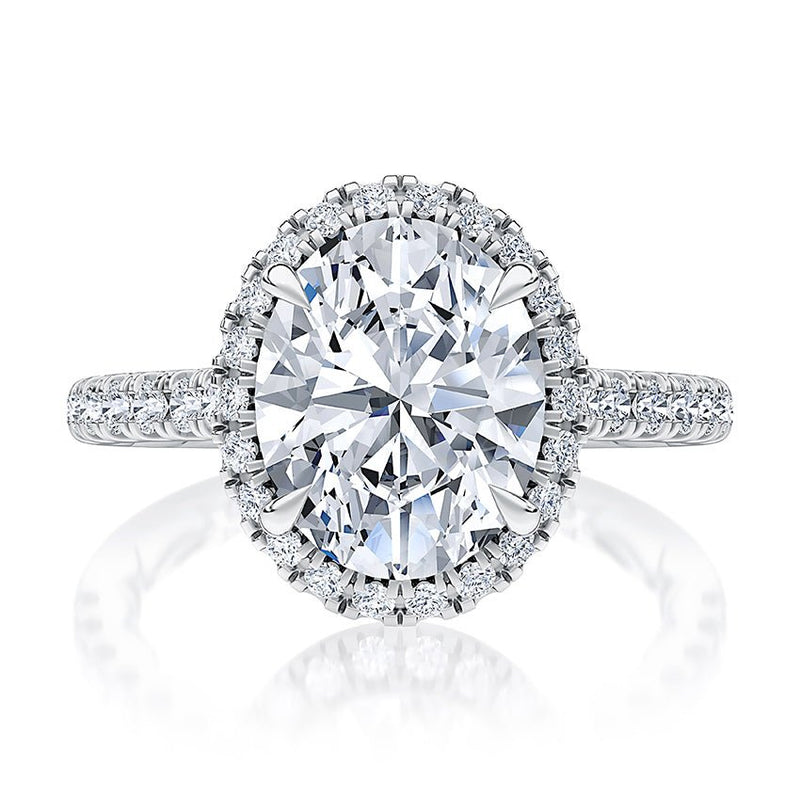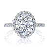 Oval Cut Diamond Engagement Ring with Oval Shaped Halo and Diamond Pave Band