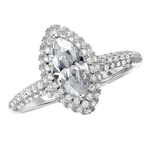Like your endless love, a circle of diamonds encompass the center stone of your choosing, making this halo style ring the perfect statement to give your bride-to-be.