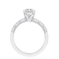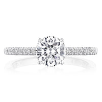 Elevate your love story with our exquisite Round Solitaire Engagement Ring. Crafted in brilliant 18 Karat white gold, accented by 30 Round G Diamonds totaling 0.16 carats. A timeless symbol of your everlasting commitment.