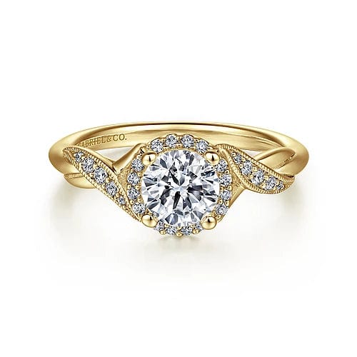 Shae - Vintage Inspired 14K Yellow Gold Round Halo Diamond Engagement Ring